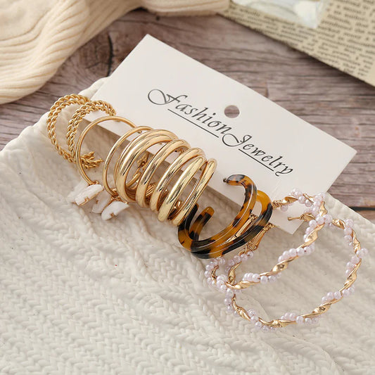 Fashion butterfly heart inlaid pearl earrings 5 pairs set